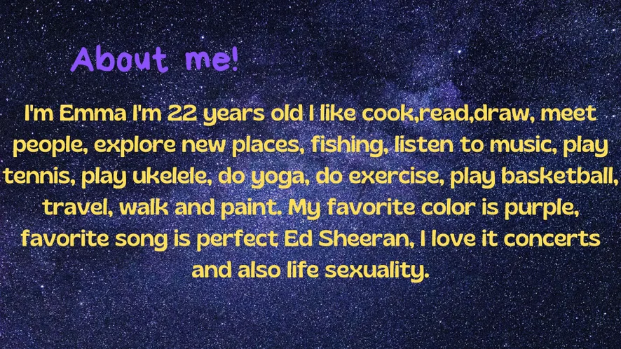 Ahegao, Blowjob, Cooking, Deepthroat, Doggy Style, Erotic Dance, Foot Fetish, Handjob, Heels, Oil Show, Role Play, Striptease, Yoga, Facesitting, Fingering, Flashing, Masturbation, Sex Toys, Humiliation, Shower, Spanking, Squirt, Twerk